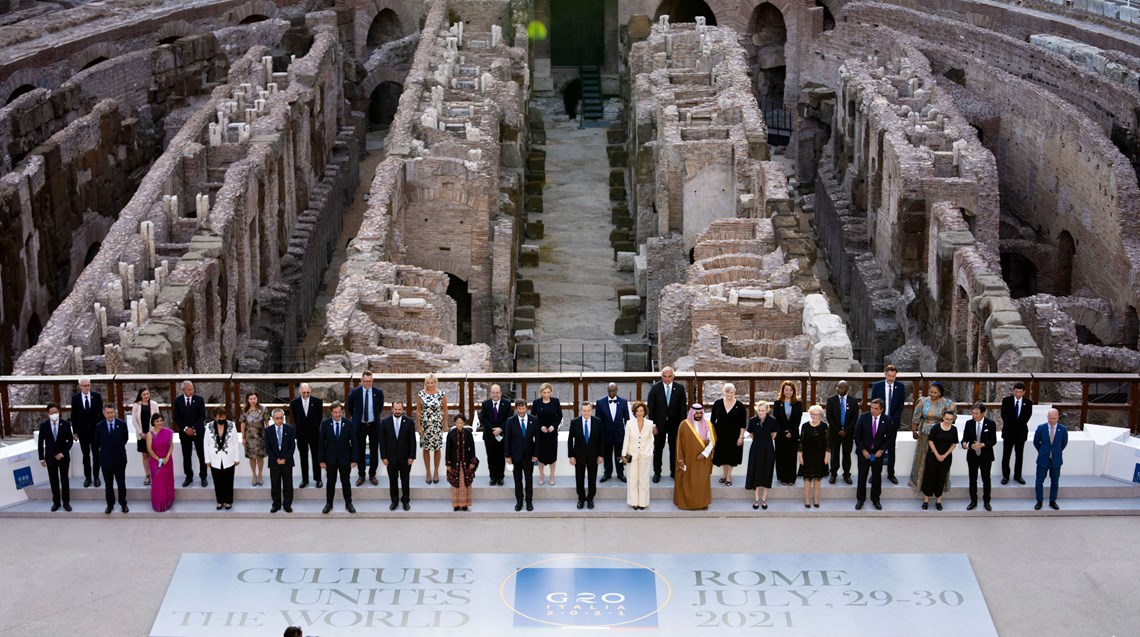 Group of Twenty Finance Ministers and Central Bank Governors (G20), en grupp bestående av nitton större världsekonomier samt Europeiska unionen, kallade den 29–30 juli 2021 till ett kulturministermöte i Rom, lett av G20:s italienska ordförandeskap. Kulturtoppmötet resulterade i ett enhälligt antagande av en kulturdeklaration; “Rome Declaration of the G20 Culture Ministers”. I och med deklarationen får kulturen som sektor ett högre ekonomiskt erkännande av G20 och inte minst slår man fast att åtgärder för att skydda kulturarv ska förstärkas.
