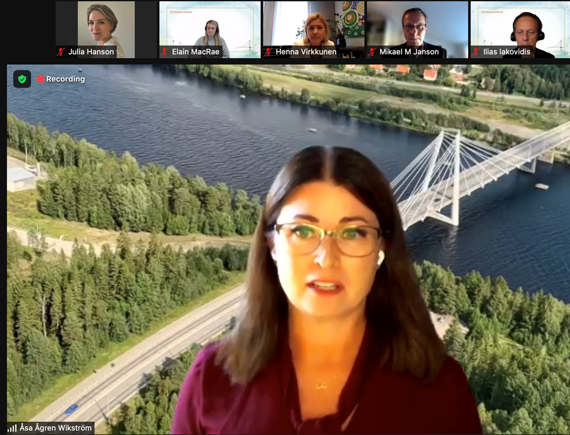 Participating speakers was; Elain Macare, head for energy strategy at Scotland Highlands & Islands Enterprises who moderated and Ilias Iakovidis, Adviser to the European Commission's Directorate – General (DG) Connect, who presented the Commission's work on a green and digital transition. The panel debate was also attended by Henna Virkkunen, Finnish Member of the European Parliament, Åsa Ågren Wikstöm, Deputy Regional Councilor in the Region of Västerbotten and a member of the European Committee of the Regions, and Mikael Janson, director of North Sweden European Office.