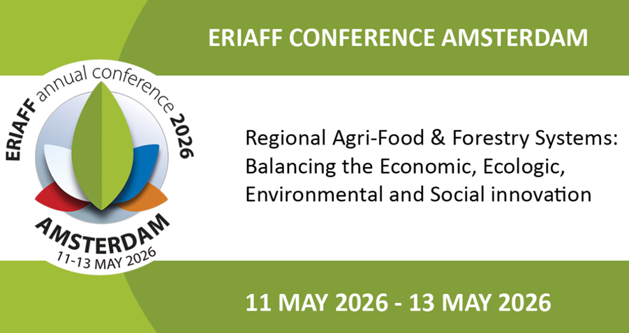 Den 11–13 maj 2026 anordnas den 12:e upplagan av ERIAFF- konferensen, denna gång i Amsterdam. Temat för i år är “Regional agri-food & forestry systems: balancing the Economic, Ecologic, Environmental and Social innovations”.