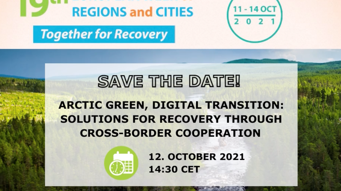 Workshopen Arctic green, digital transition: solutions for recovery through cross-border cooperation som äger rum under European Week of Regions and Cities (EWRC) kommer att belysa regionala exempel från arktiska och nära arktiska regioner, som leder EU:s gröna övergång. Exemplen kommer att sätta scenen för en diskussion mellan deltagarna och en politisk panel med representanter från olika nivåer. EU:s politik för en ökad grön och digital utveckling samt gränsöverskridande samarbete kommer att diskuteras i syfte att nå lösningar för målen i EU:s gröna giv.