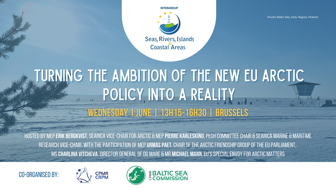 Den 1 juni bjuder Seas, Rivers, Islands & Coastal Areas (SEArica) och Conference of Peripheral Maritime Regions (CPMR) in till seminarium i Bryssel om EU:s arktiska politik. Evenemanget kommer specifikt fokusera på EU-kommissionen uttalande och implementering av ”Ett starkare EU-engagemang för ett grönare, fredligt och välmående Arktis".