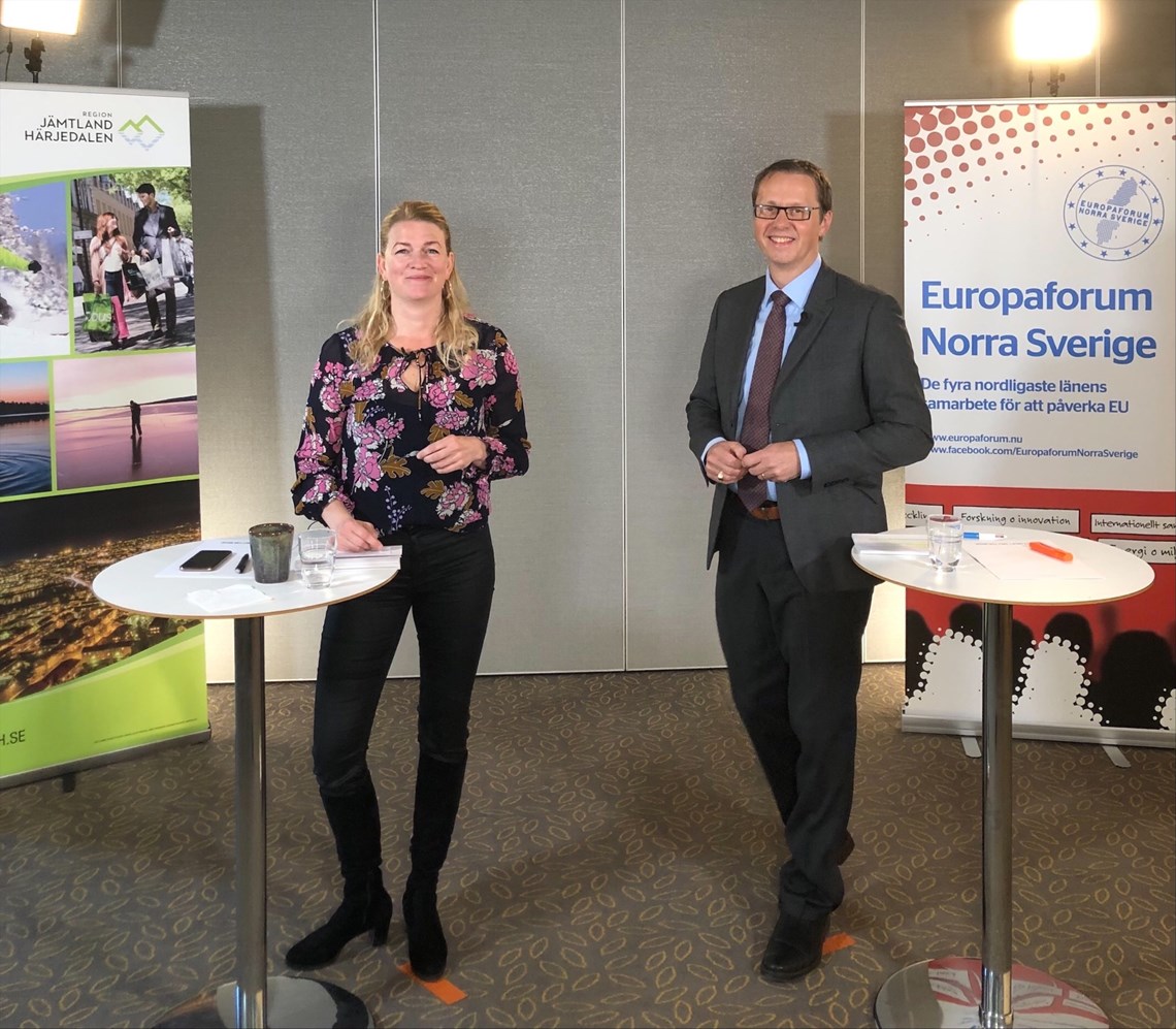 Forumet startades upp med att Mikael Janson och Lotta Rönström, direktör respektive senior rådgivare vid North Sweden European Office, i egenskap av forumets moderatorer, önskade alla deltagare välkomna. I gengäld för att 20-årsfesten fick anstå konstaterade de att det digitala forumet erbjuder möjligheter att koppla upp många intressanta talare från EU som annars kan vara svårt att få upp samtidigt till norra Sverige. Aktörer som varit och är viktiga för norra Sveriges intressen vilket arrangörsteamet för forumet tagit fasta på. Tanken med dagen var att bjuda på lite av ett smörgåsbord som blickar både bakåt och sätter agendan framåt utifrån EU:s stora gröna giv. Inför forumet hade även en liten “handledning” tagits fram för deltagarna att få lite mer underlag kring de olika passen för dagen.