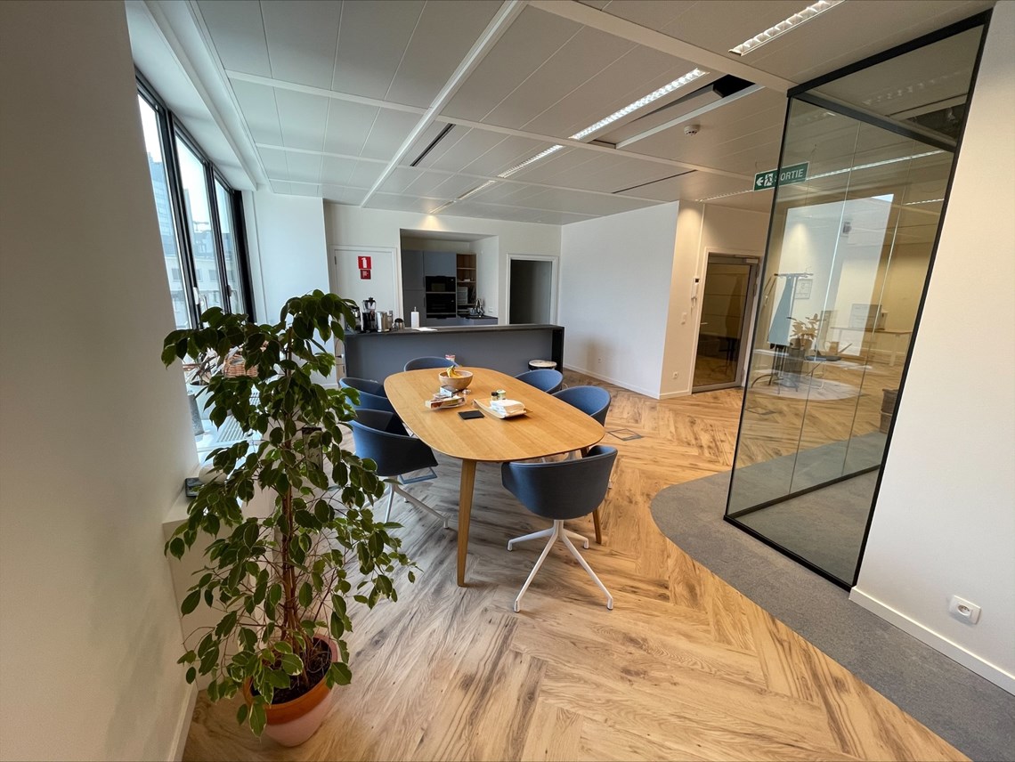Idag har kontoret med allt dess innehåll nästan kommit på plats efter en veckas intensiv flytt och avyttring av de gamla lokalerna och att börja komma på plats i de nya. Så sent som i torsdags förra veckan installerades internet, diskmaskin samt kranvatten. De nya lokalerna på Avenue des Arts är av en helt ny stil eftersom de andas modernitet och funktionalitet. Det som återstår att göra är bland annat att inreda de gemensamma sociala ytorna på den nya adressen. Exempelvis loungen som är kontorets hjärta där kontoren strävar efter en välkomnande vardagsrumskänsla.