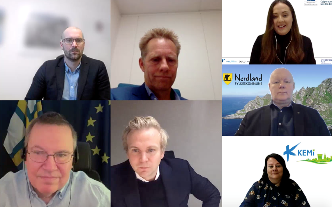 Den 8 december anordnade Norrbottens Handelskammare och Business Oulu den andra delen i sin webbinarieserie Attractive Arctic Europe som North Sweden modererade. Representanter från Bodens kommun, Region Norrbotten, Nordlands fylke, Narviks kommun, Lapplands landskapsförbund och Kemi kommun samlades digitalt för att delge perspektiv på gröna miljardinvesteringar för etablering och omställning av industrier i Norra Sverige, Finland och Norge.