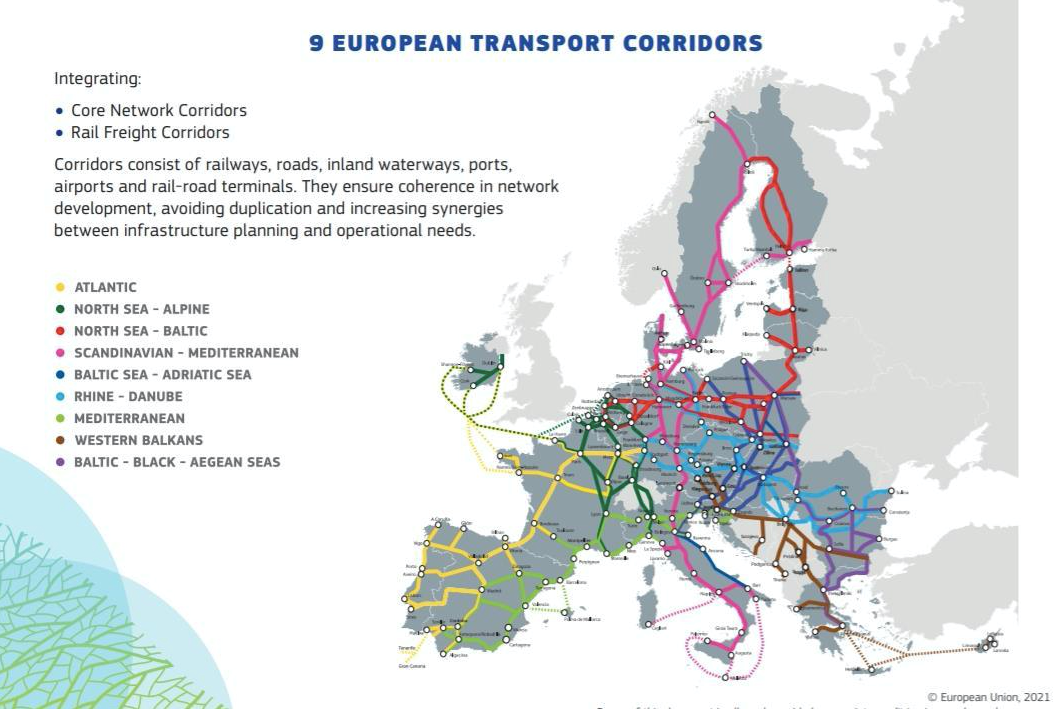 EU:s förordning för det transeuropeiska transportnätet (TEN-T) syftar till att bygga upp ett sammankopplat transportnät som innefattar alla transportslag. Nuvarande TEN-T-lagstiftning trädde i kraft 2014 och definierar nätverk med den transportinfrastruktur i medlemsländerna som har stort mervärde på europeisk nivå. Förordningenen fastställer krav som denna infrastruktur måste uppfylla, bland annat i fråga om säkerhet, kvalitet hos transporter med hög kapacitet och anpassning till miljömål. Nu pågår en revidering av förordningen för att rusta transportnätet för framtiden. Det handlar bland annat om att anpassa transportnätets utveckling till klimatmålen i den europeiska gröna given och i EU:s klimatlag.
