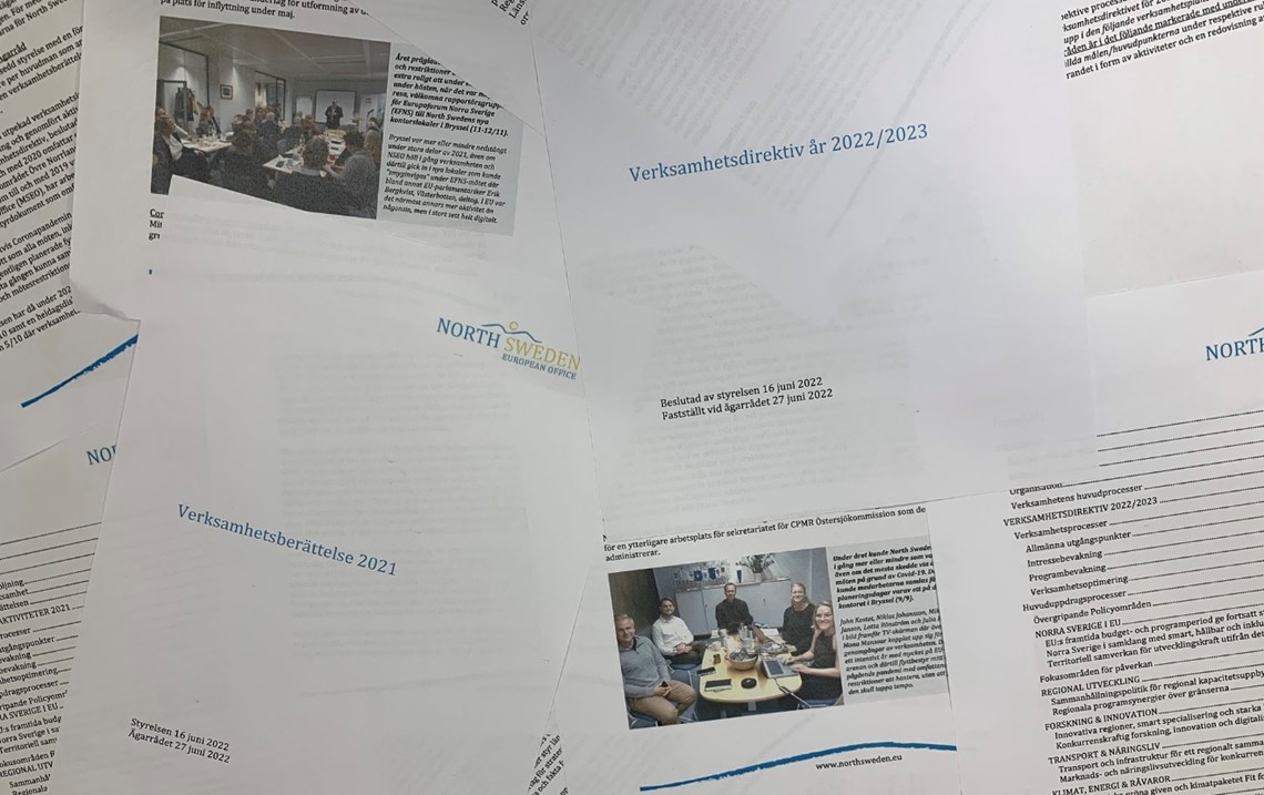 Direktivet och insatsområdena med målsättningar följs i sin tur upp i den Verksamhetsberättelse som för 2021 också behandlades på Ägarrådet. Verksamhetsberättelsen är en omfattande redogörelse för det gångna året för den som önskar ta del av North Swedens arbete och de resultat som det bedöms ge. Ambitionen är att ge en relativt fullödig bild för de olika insatsområdena men att också genom förordet och de bildtexter som lagts in förmedla ett övergripande svep som fångar en del av det som görs och gjorts och vad som uppnåtts för den som vill få en överblick. 2021 skilde inte sig från andra år med att det i EU varit ett intensivt arbete, även med och rent av på grund av en Covid-19-pandemi som komplicerat tillvaron men också öppnat för många nya arbetsformer.