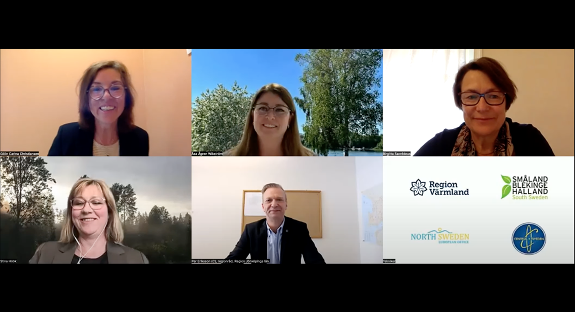 Under den andra delen av webbinariet diskuterade representanter från regional nivå de potentiella effekterna av EU:s skogsstrategis på regional utveckling. Samtliga talare uttryckte stark oro: Åsa Ågren Wikström från Region Västerbotten, Birgitta Sacrédeus från Sveriges regioner och kommuner (SKR) och Region Dalarna, Stina Höök från Region Värmland och Per Eriksson från Jönköpings län.