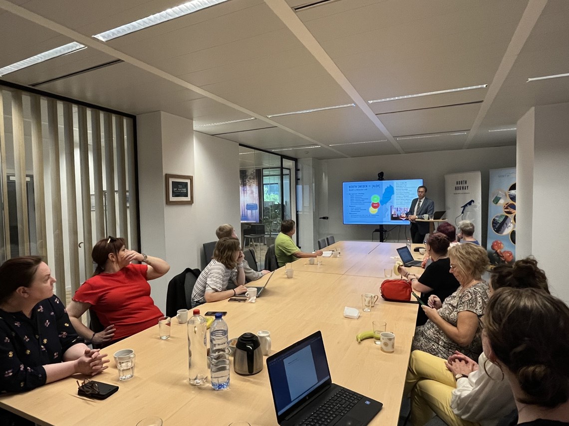 Den 4 september fick North Sweden-kontoret höstens första studiebesök då Vänsterpartistiska fullmäktigegruppen i Region Norrbotten var på studieresa i Bryssel. Under besöket gav Mikael Janson, direktör på North Sweden, en genomgång av vad som rör sig på Brysselarenan och North Swedens påverkansarbete. Det fanns även tid för dialog om bland annat skogsfrågan och utmaningar kopplat till kompetensförsörjning och infrastruktur i norr.