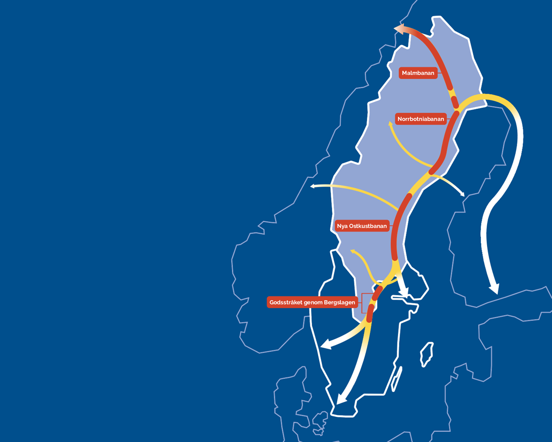 - Ett samlat finansieringspaket för Malmbanan, Norrbotniabanan, Nya Ostkustbanan och Godsstråket genom Bergslagen.
