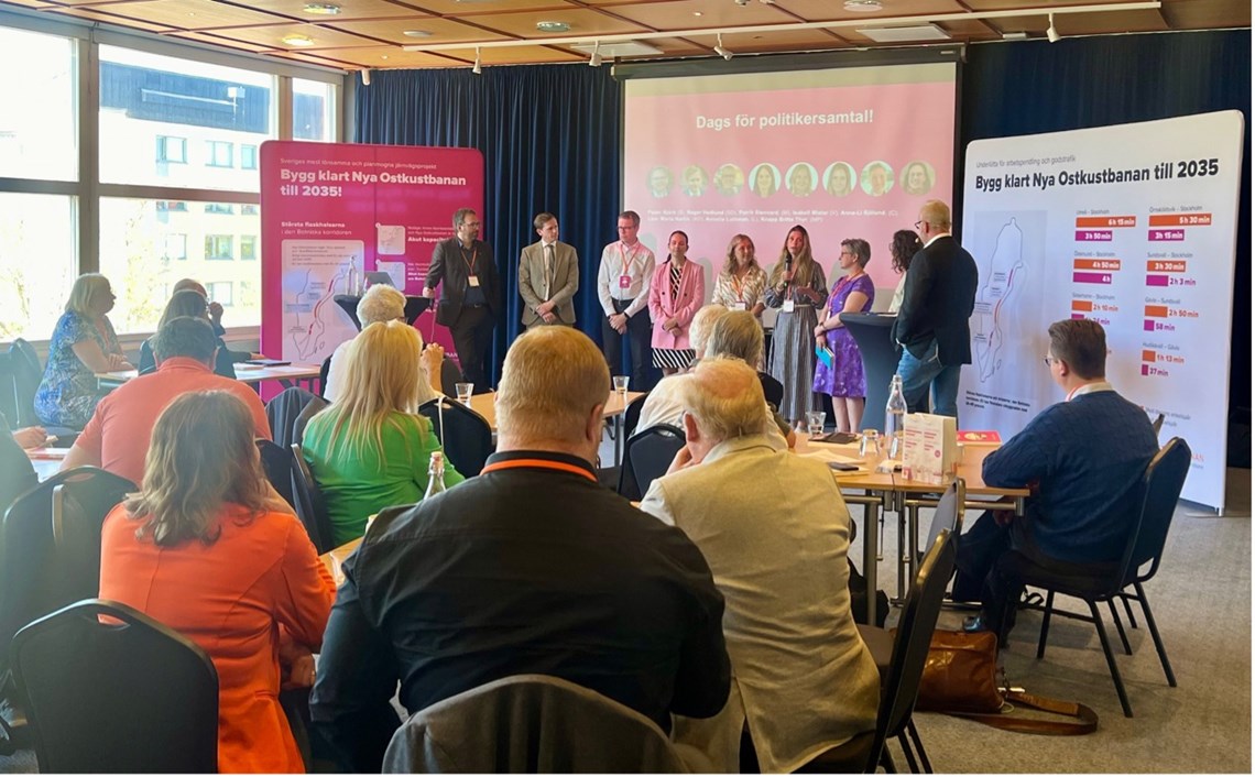 Det finns en stor enighet mellan partierna om att Nya Ostkustbanan måste prioriteras och byggas klart senast 2035. Det har tidigare visats i en partigranskning där samtliga åtta riksdagspartier har fått uttala sig i frågan, men blev även tydligt i diskussionen mellan ledamöterna under mötet. Olika tankar kring vägar framåt för att påskynda utbyggnaden av Nya Ostkustbanan presenterades, till exempel möjligheten med alternativ finansiering för att dryga ut infrastrukturbudgeten. Detta är något samarbetet Botniska korridoren är i färd med att ta fram en rapport kring som kommer att presenteras vid ett event i Almedalen den 26 juni där North Sweden är medarrangör.