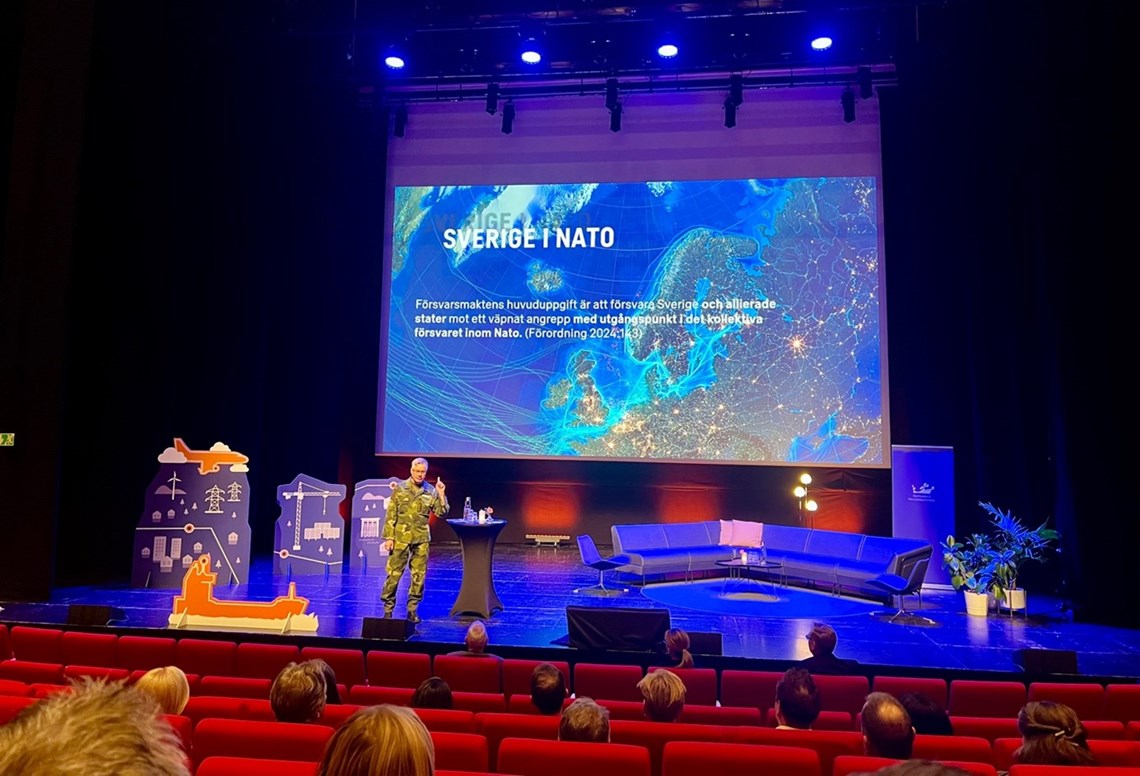 Överste Lars Karlsson, Chef för norra militärregionen på Försvarsmakten, inledde dagen med en utblick kring det geopolitiska läget och Nordkalottens strategiska roll i den kamp om inflytande och naturresurser som pågår. Lars Karlsson berättade om olika typer av påverkansoperationer som ständigt sker såsom politiska påtryckningar eller informationsoperationer och underströk vikten av robust infrastruktur och god reparationskapacitet vid en väpnad konflikt. De viktiga stråken i norra Sverige behöver därför byggas ut och rustas upp utifrån såväl militär som civil nytta, s k dual use.