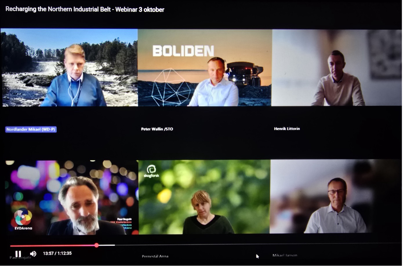 Lunchwebbinariet arrangerades av EVDArena, Electrification Value Discovery Arena tillsammans med Företagsutbildarna och utöver Mikael Janson från North Sweden för att ge EU-perspektiven, bestod panelen av Peter Wallin, Boliden Mines Electrification Program, Anna Pernestål, Skogforsk, Mikael Nordlander, Vattenfall, och Henrik Littorin, Arctic Aviation Hub, modererat av Paul Bogatir från EVDARena, för att diskutera hur elektrifieringen förändrar norra Sverige, från Kiruna till Sandviken.