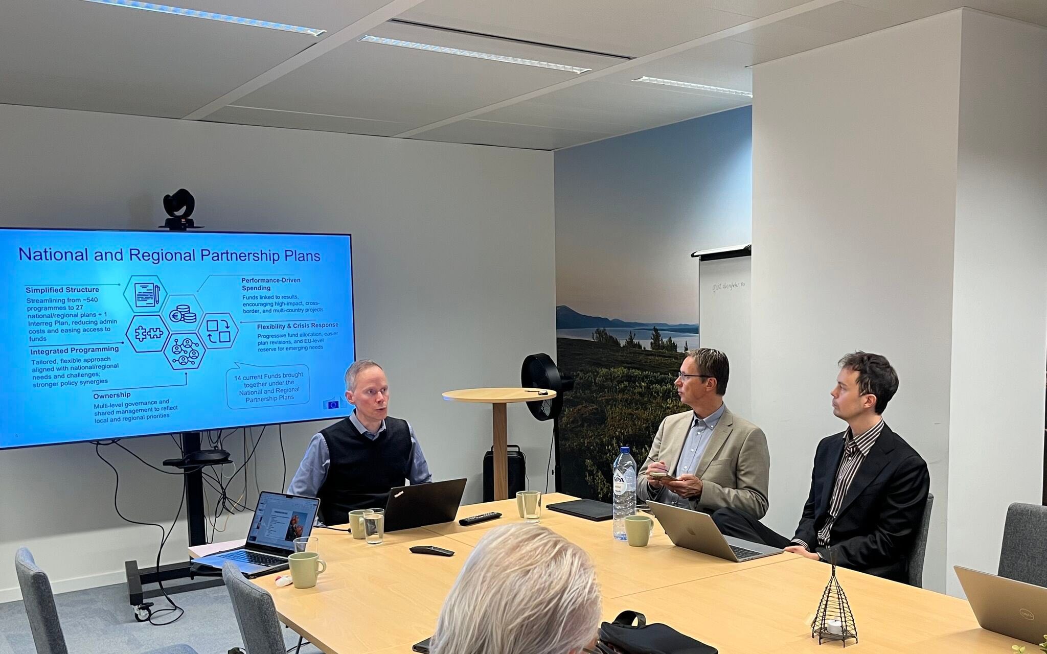 Sedan mötte styrelsen Fredrik Tiger från EU-kommissionens generaldirektorat för regionalpolitik (DG REGIO) som informerade om EU-kommissionens arbete med att ta fram förslaget till EU:s långtidsbudget. Han berättade om de förändringarna i förslaget till EU:s kommande budget och EU-kommissionens fokus på en ökad flexibilitet i den kommande långtidsbudgeten.