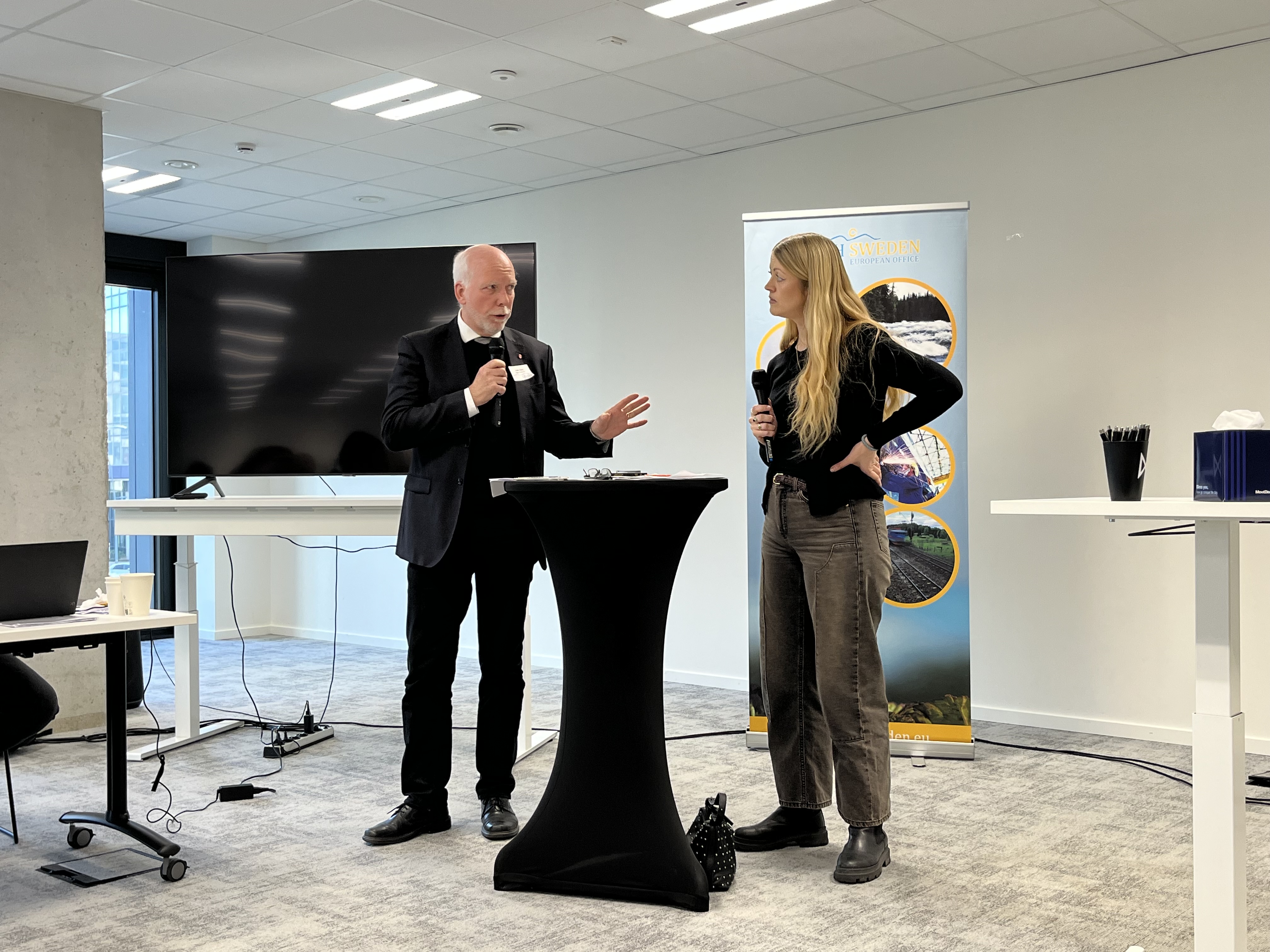 North Swedens Lotta Rönström och Erik Lövgren, Kommunalråd i Ånge och sammankallande i arbetsgruppen för infrastruktur och samhällsbyggnad inom Europaforum, presenterade sitt påverkansarbete på Brysselarenan och berättade hur det hänger ihop med aktörer på hemmaplan när det gäller transportpolitik och där det ser mer positivt ut för norra Sveriges del.