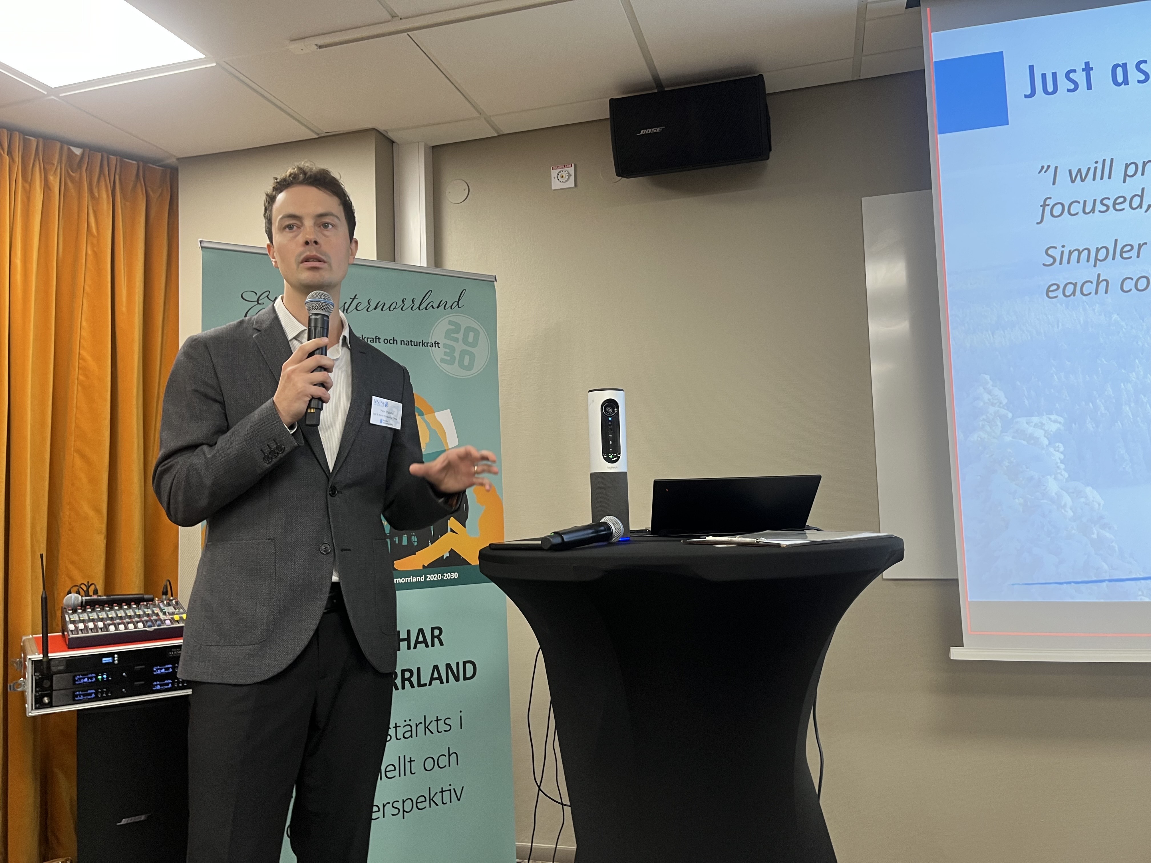 Niklas Johansson från North Sweden gjorde därefter en genomgång av de stora förändringar som väntas i EU:s näringspolitik med en mer aktiv industripolitik som genomförs genom den nya stora Konkurrenskraftsfonden och, hur det kan påverka norra Sveriges förmåga att de del av dessa medel och bidra till EU:s gröna industriella omställning om det kvarstår efter förhandlingarna med Europaparlamentet och Rådet.
