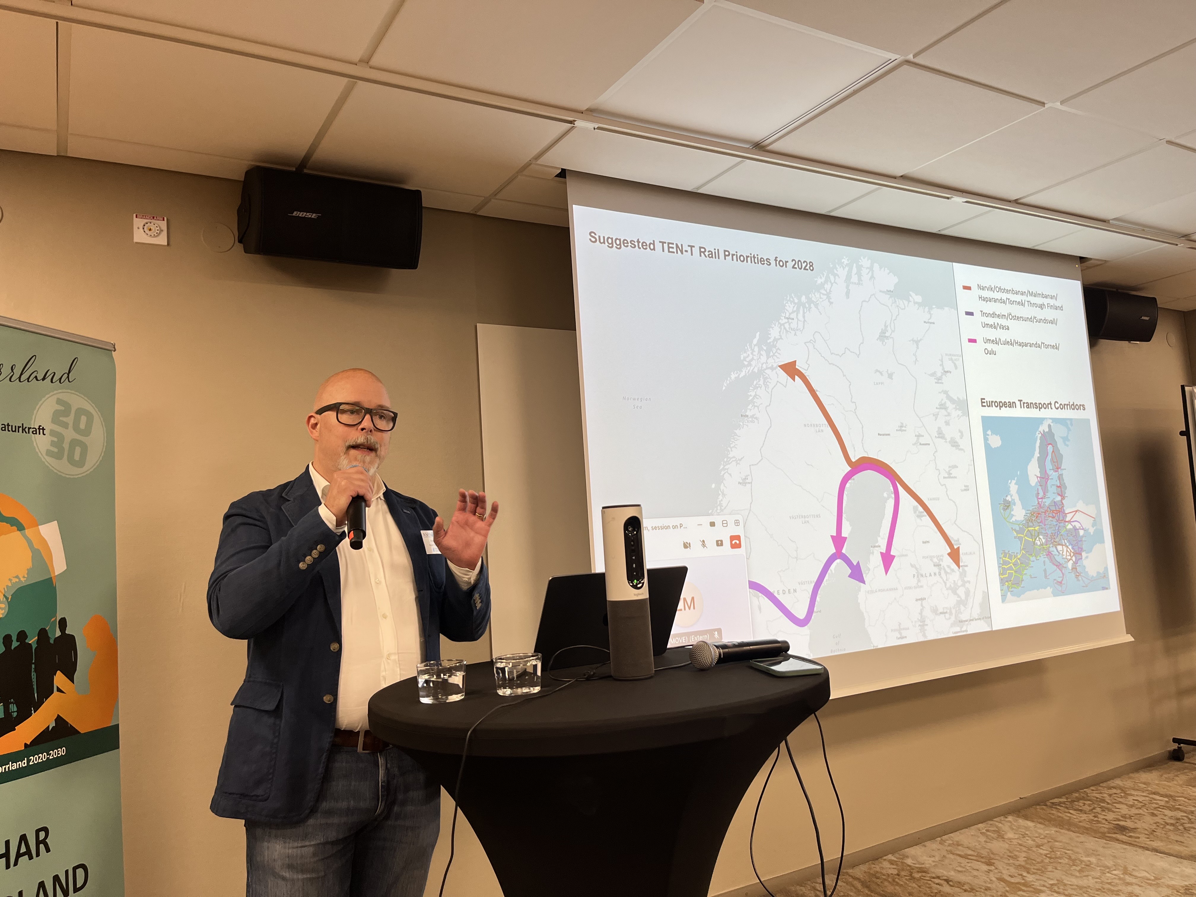 Därefter deltog Henric Fuchs, Strateg på Region Västernorrland. Han gav en inblick i samarbetet Plattform Norr. Plattform Norr är ett initiativ från Trafikverket till samverkan mellan de nordiska länderna med anledning av den gröna omställningen, industrisatsningar som sker och utifrån ett ökat fokus på militär mobilitet i norra Sverige, norra Norge och norra Finland. Samarbetet har tre fokusområden, en gemensam transportplan, finansieringslösningar och etablerandet av en informationsplattform.