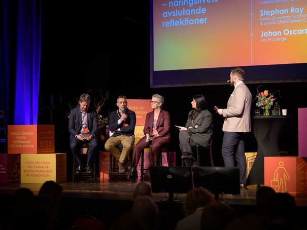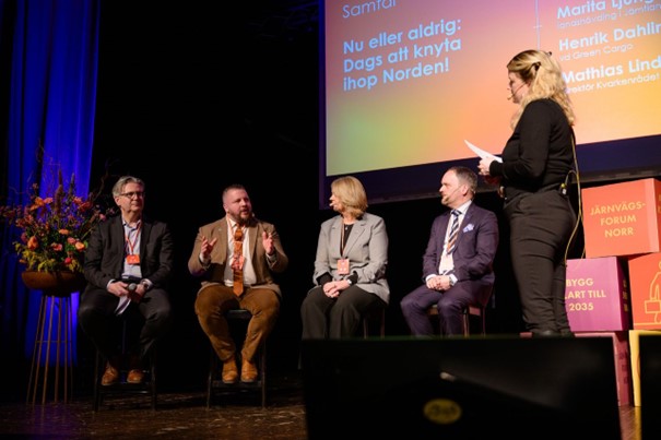 I den avslutande panelen, som modererades av Lotta Rönström, North Sweden, breddades perspektivet till nordisk samverkan. I panelen deltog Jörgen Berglund, Marita Ljung, landshövding i Jämtland, Henrik Dahlin och Mathias Lindström, direktör Kvarkenrådet. Behovet av att knyta ihop Norden – från Atlanten till Finland – beskrevs som både en säkerhets- och konkurrenskraftsfråga. Samtidigt pekade flera på konkreta hinder: olika regelverk, språk, tillståndsprocesser och tekniska system försvårar gränsöverskridande transporter, och spårviddsskillnaden mot Finland skapar ineffektivitet.