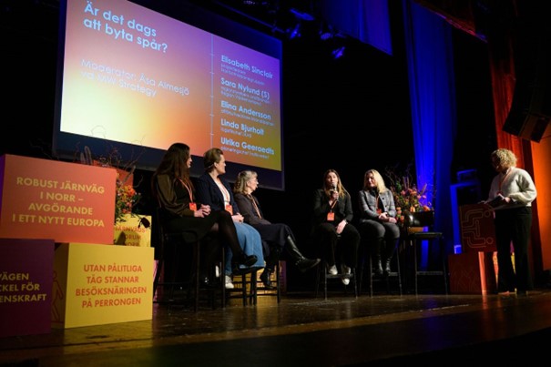 Den efterföljande panelen samlade Elisabeth Sinclair, projektledare Norrbotniabanegruppen, Sara Nylund (S), regionstyrelsens ordförande Västernorrland, Elina Andersson, affärsutvecklare Inlandsbanan, Linda Bjurholt, logistikchef LKAB och Ulrika Geeraedts, planeringschef, Trafikverket och modererades av Åsa Almesjö. Budskapet var samstämmigt: tempot i järnvägsinvesteringarna måste upp. Panelen pekade på kapacitetsbrister som redan kostar miljardbelopp och bromsar både omställning och konkurrenskraft. Flera såg bolagsform och OPS-lösningar som möjliga verktyg. Ulrika Geeraedts framhöll att Trafikverket ser positivt på effektivare genomförande och konkurrens, men att ansvar, regelverk och finansiering måste tydliggöras.